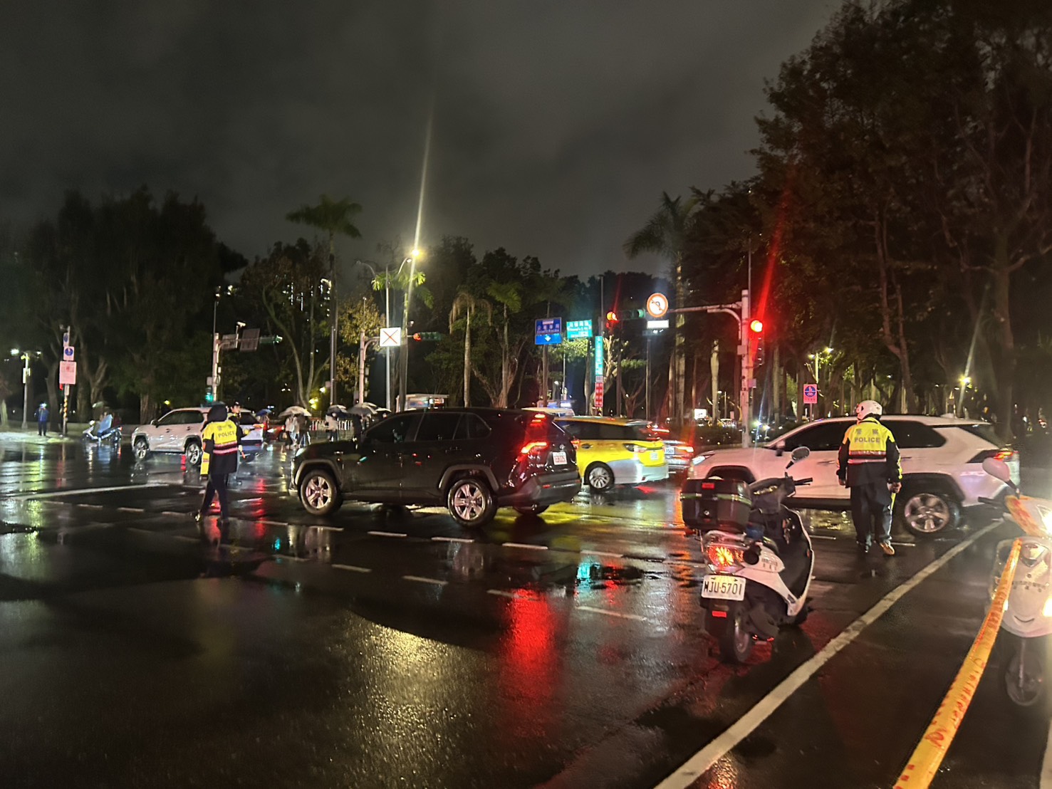警方在火場週遭指揮管制交通。翻攝畫面