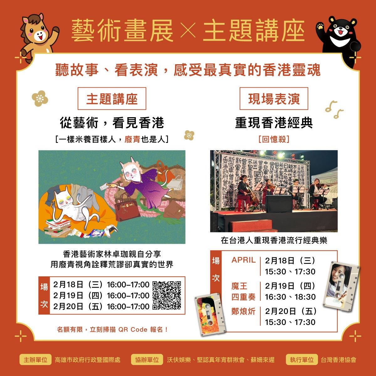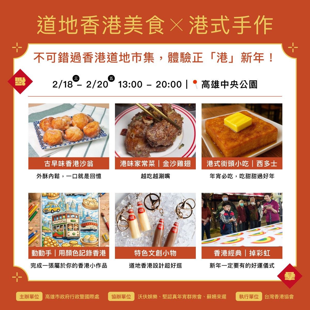 今年活動結合市集、音樂演出、藝術展覽、足球工作坊與文化講座等豐富內容,邀請市民在春節連假期間走入香港年節文化,體驗高雄限定、港味十足的節慶氛圍。