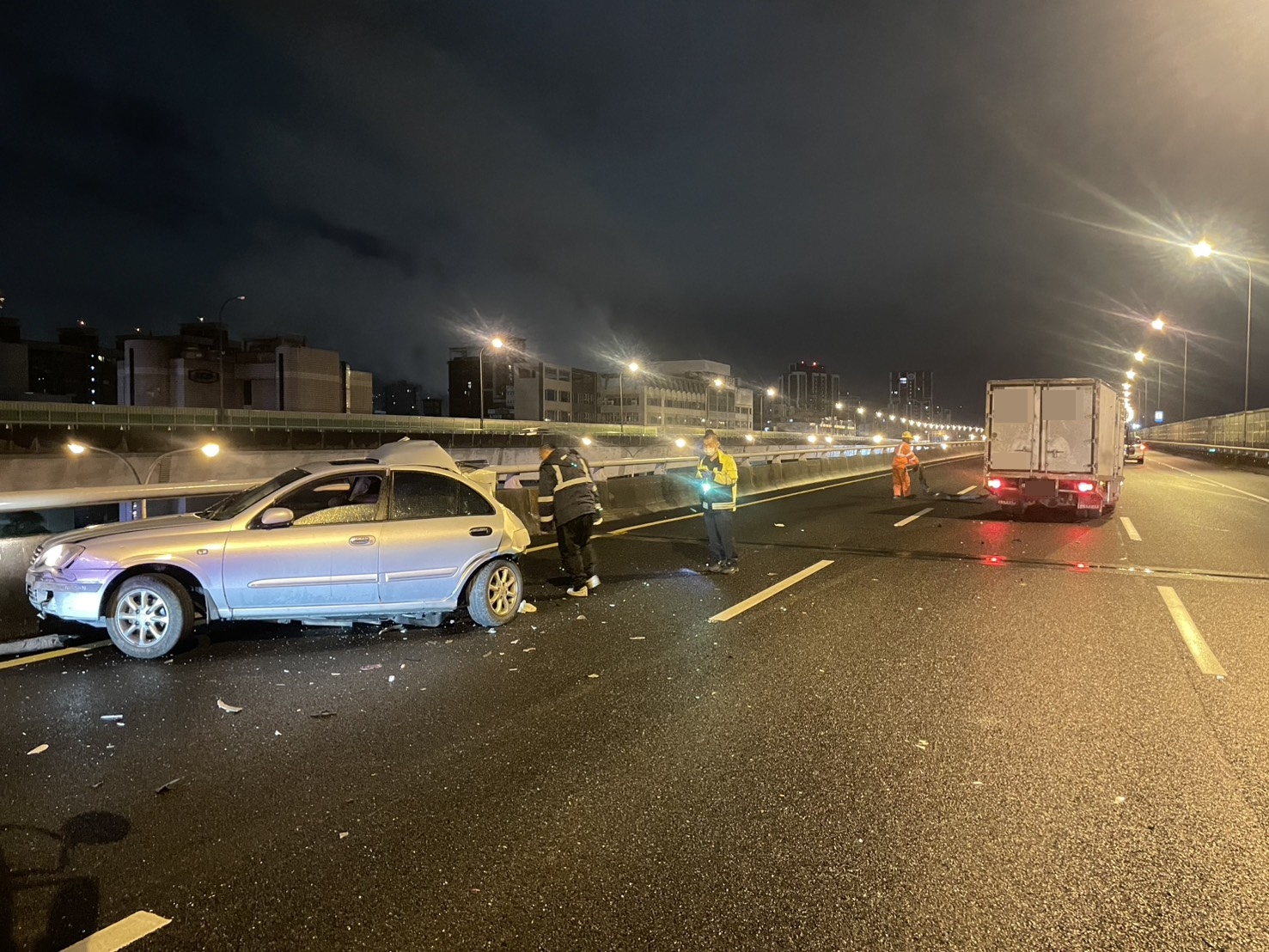 國道警察第一大隊表示,2月2日4時44分接獲新北市110通報,國道1號汐五高架道北向27.9公里三重路段有事故,員警到場查知,46歲賴姓男子駕駛小客貨車行經汐五高架道北向27.9公里三重路段,疑似未注意車前狀況,撞擊前方61歲陳姓男子駕駛的小客車,導致陳男車輛被撞擊至內側車道。