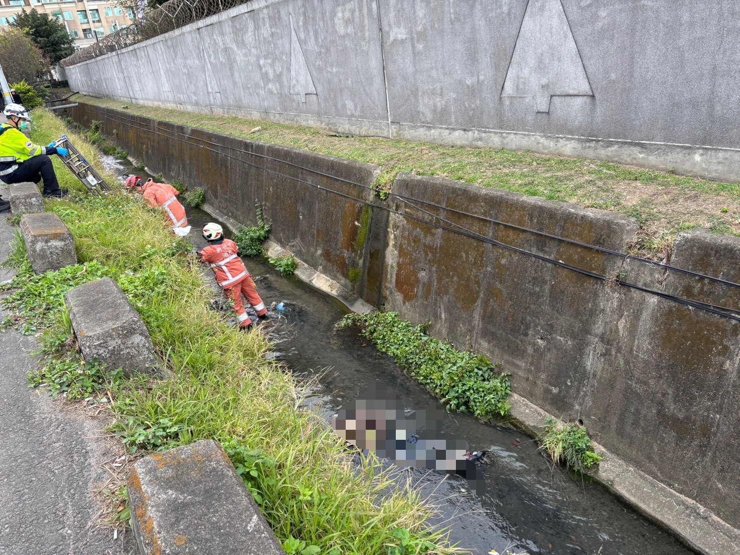 新竹市消防局表示,該水溝高度約2公尺、水深10公分左右,死者年約60歲、發現時面部朝下、明顯死亡,全案由警方調查處理中。