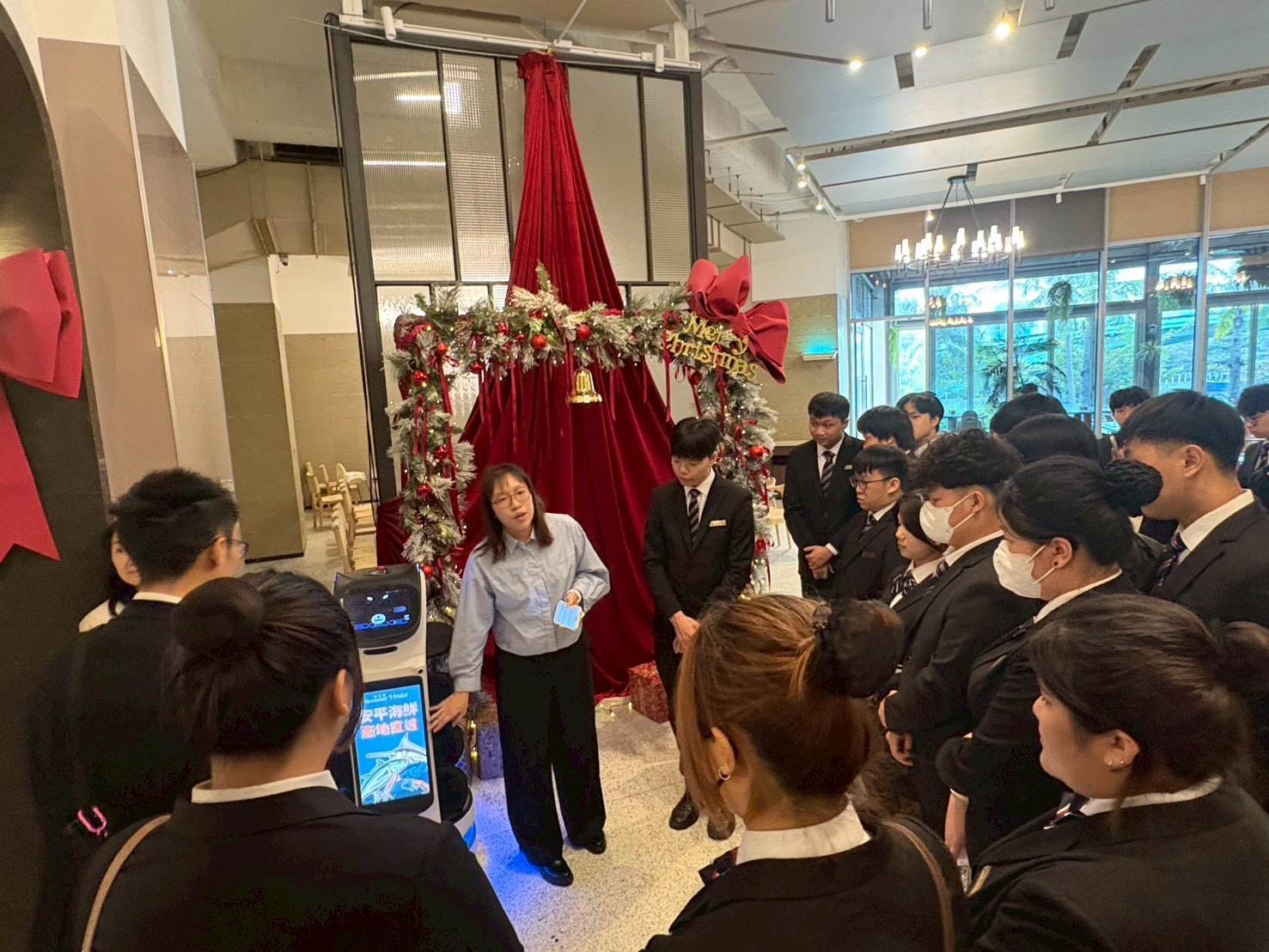 ▲師生至福爾摩沙遊艇酒店參訪,飯店主管介紹送餐機器人。(圖/崑山科大提供)