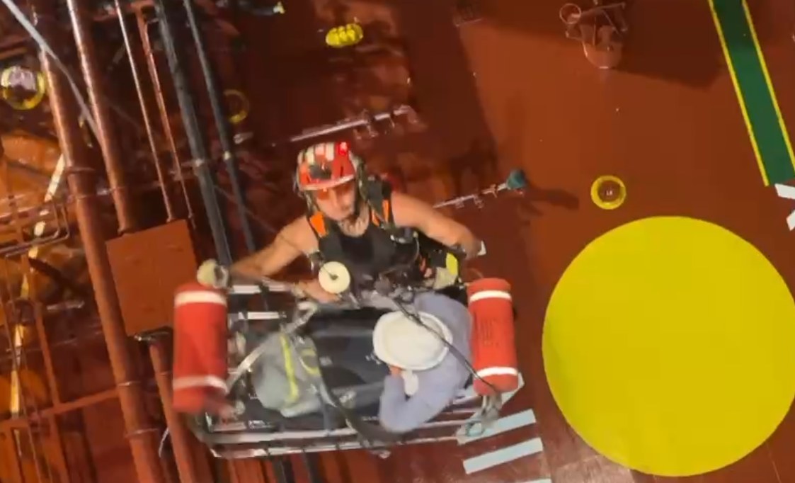 海上救援畫面曝光! 空勤直升機吊掛骨折中國油輪船員就醫