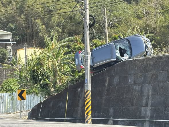 【Lai傳媒、記者爆料網/周庭慶/苗栗報導】台三線苗栗獅潭鄉路段今(13)日發生一起罕見事故!1輛自小客車在轉彎路段失控衝入對向上坡農路、撞到路旁凸起水表側翻,車子就停在農路的邊緣,差點就墜落下方的台3線路面,造成擋風玻璃破裂,駕駛無明顯傷勢。