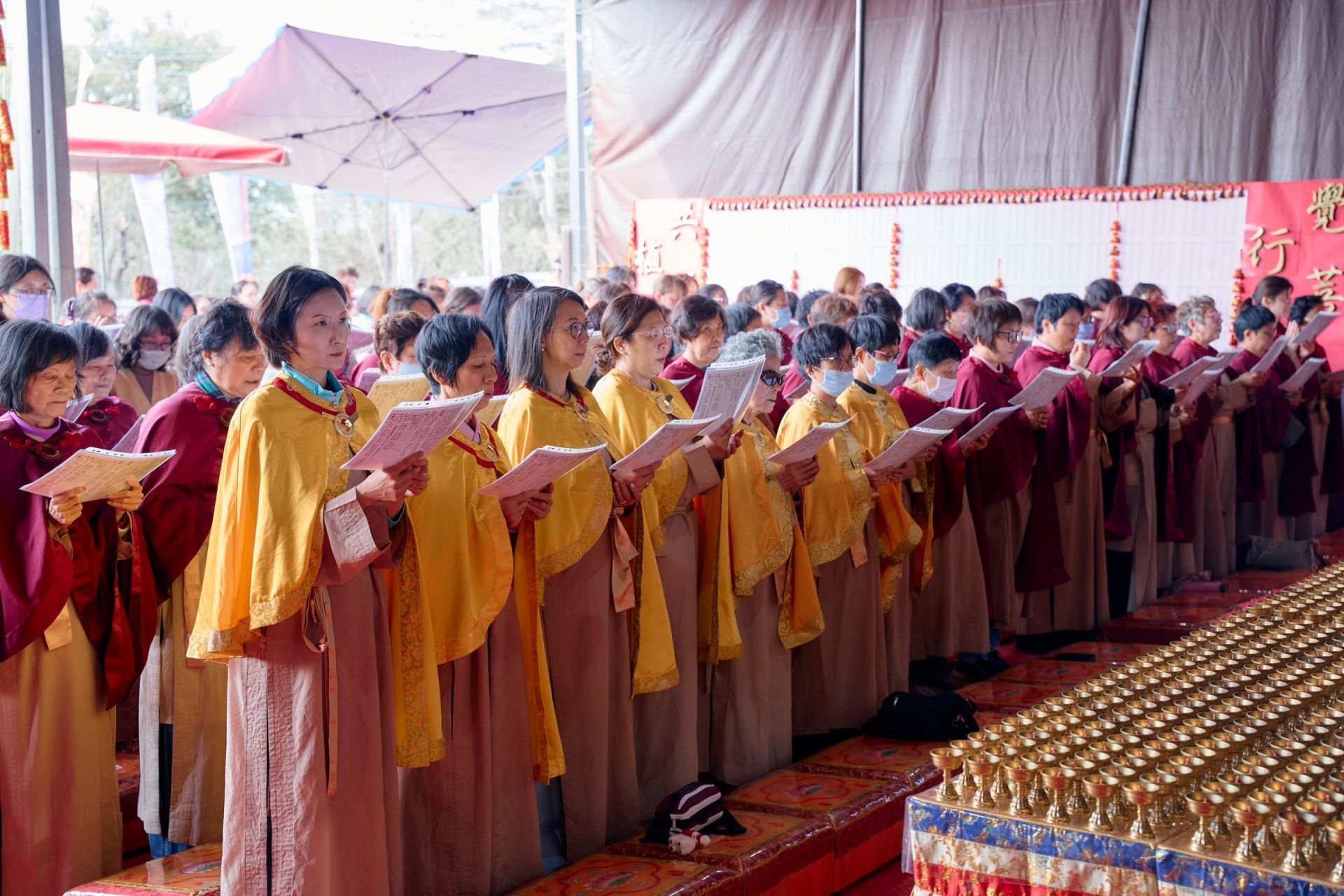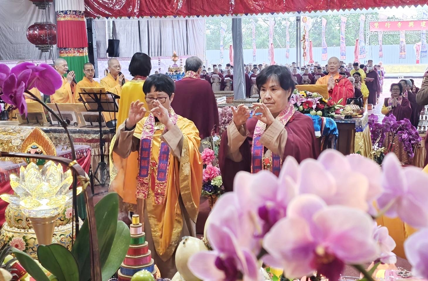 ▲覺行寺2026新春萬燈供佛法會,善信大眾分立東西兩單虔誠恭迎世界佛教總部副主席聖德釋證達教尊。(圖/覺行寺提供)