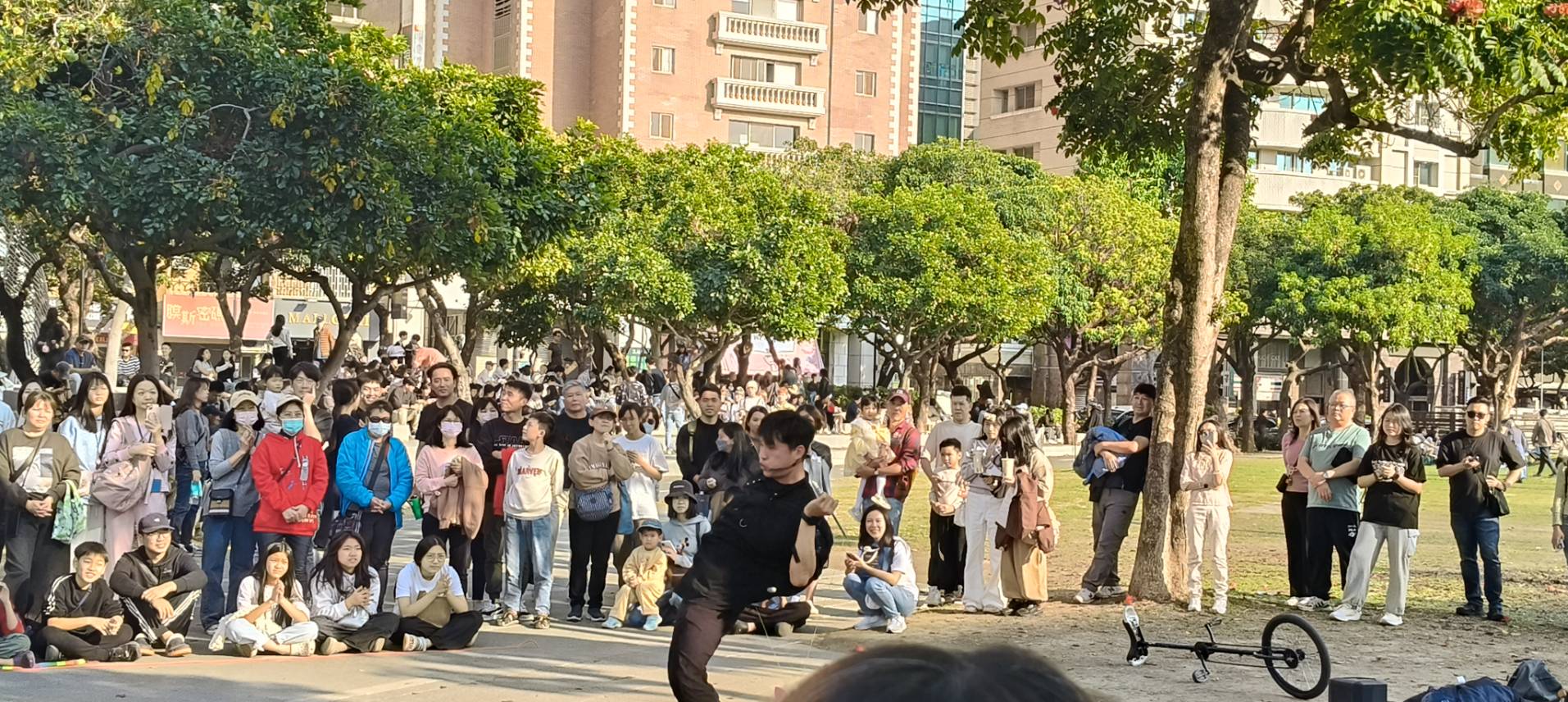 午後的勤美綠園道,人潮穿梭、陽光斜落,我原本只是到處逛逛,卻在轉角被一陣清脆的聲響吸引。那是一場扯鈴表演。沒有華麗舞台、沒有燈光特效,只有一條細線與一顆旋轉的扯鈴,在空氣中劃出弧度。那種在喧囂中突然被「抓住」的瞬間,其實並不常見。