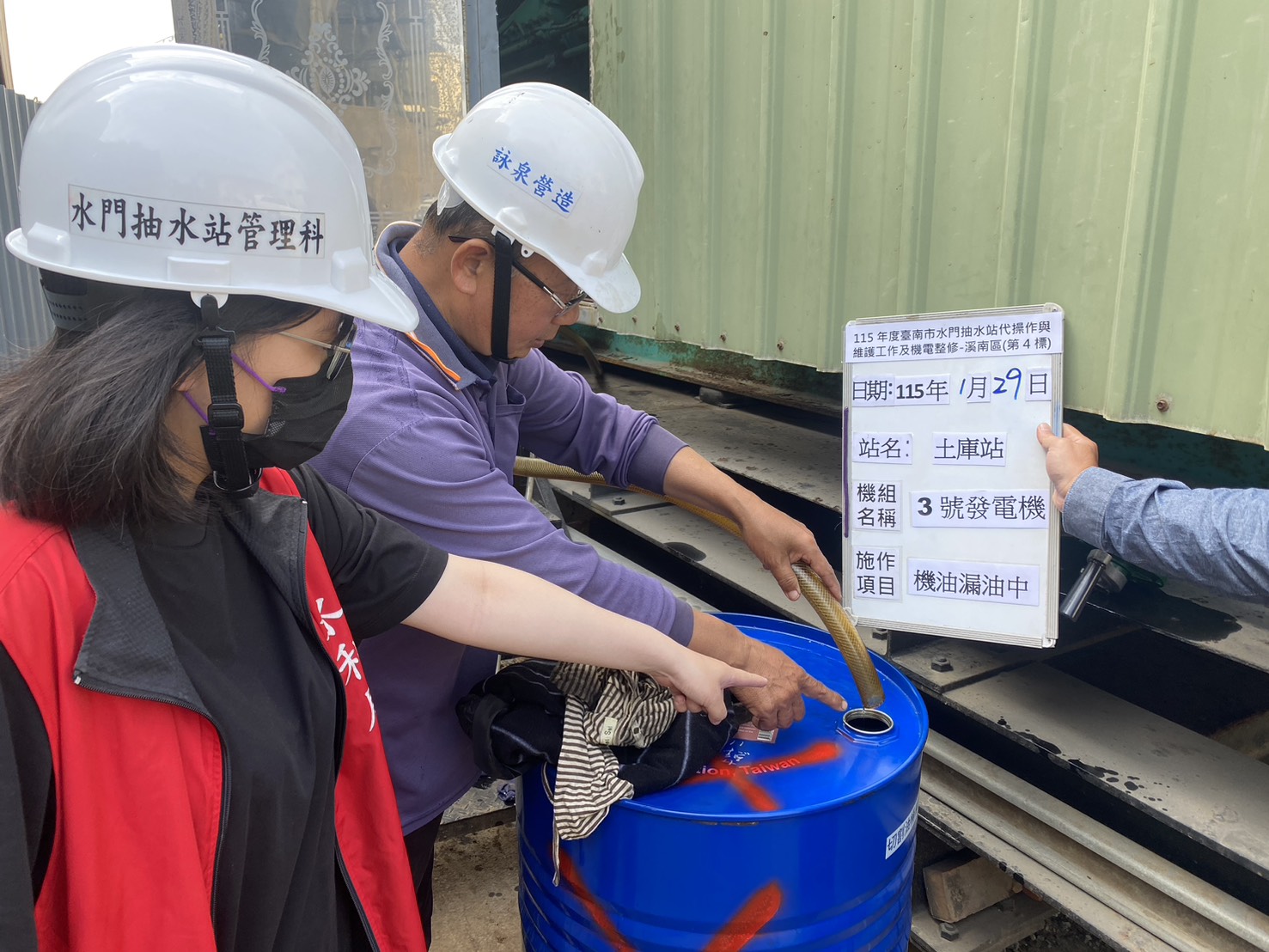 水利局人員督查維護廠商辦理大保養工作(土庫抽水站)。圖/台南市水利局 提供