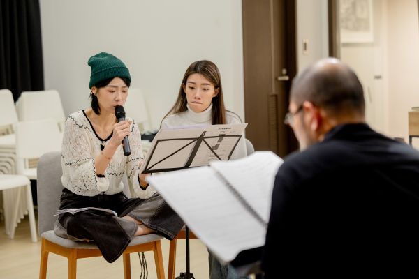 圖4:大玩樂家5—《陳志遠 & 簡文彬 & 曹雅雯 跨樂衛武營音樂會》,歌手曹雅雯(圖左)和指揮簡文彬(背對鏡頭者)緊鑼密鼓排練中。攝影 Kito,衛武營國家藝術文化中心提供。