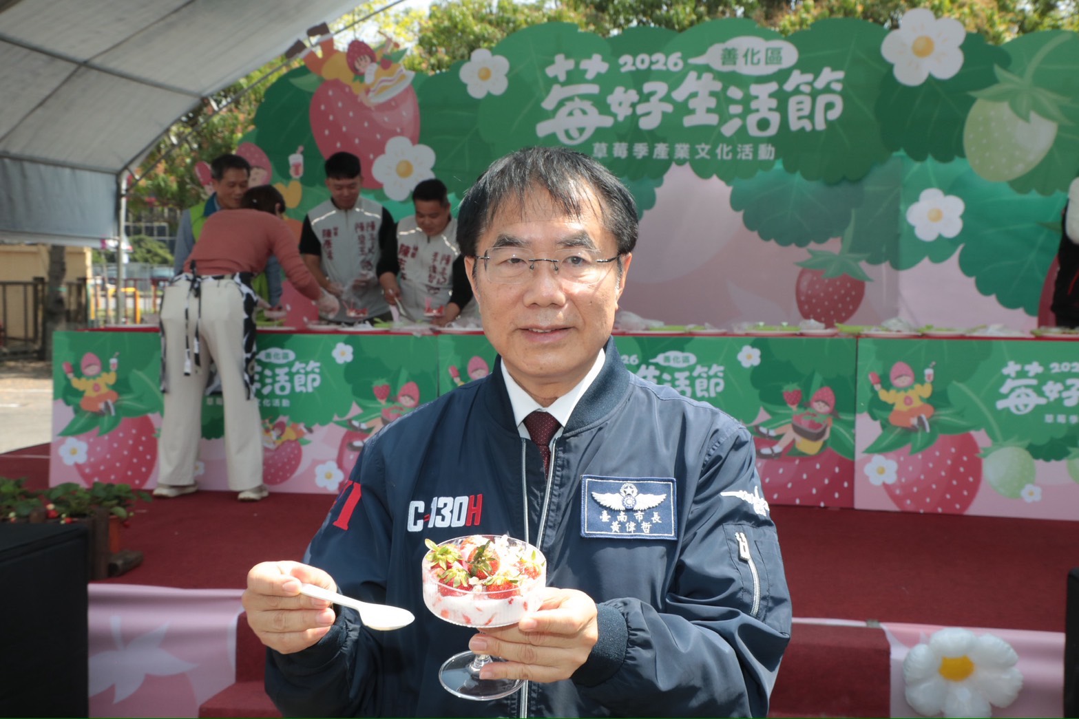 台南善化區公所於今(7)日在善化啤酒觀光工廠舉辦「115年善化區草莓季產業文化活動—莓好生活節」。市長黃偉哲親自出席開幕典禮,與來賓一起現場製作「草莓炒冰」,熱情邀請全國民眾趁著冬春交際,來到台南體驗採草莓的田園樂趣。