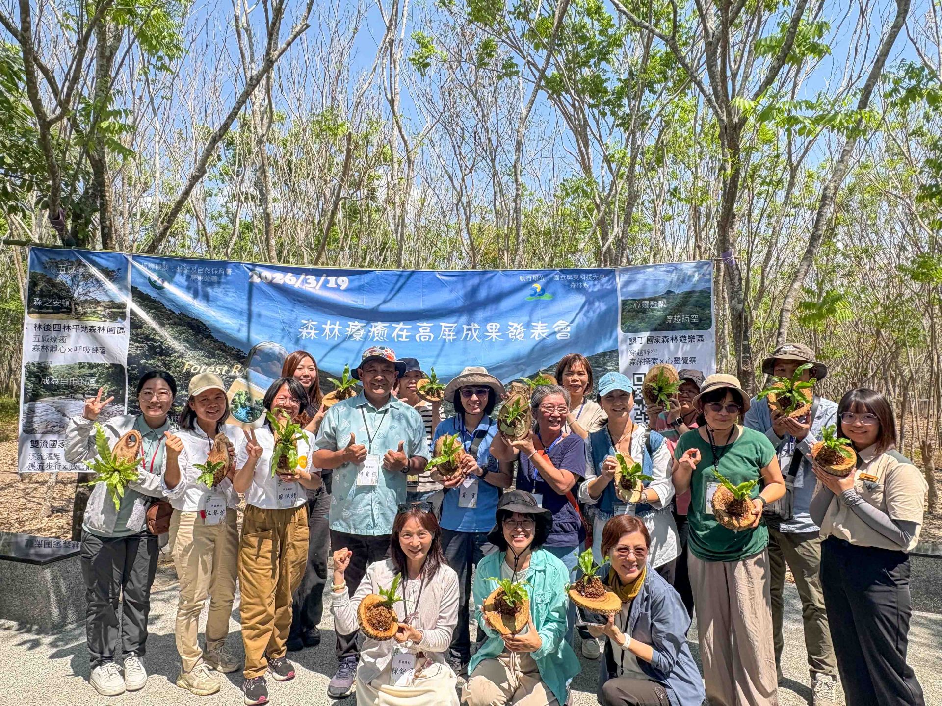 為推動森林療癒專業發展並深化地方連結,國立屏東科技大學與林業及自然保育署屏東分署攜手合作,在高屏地區培育森林療癒人才。歷經完整課程訓練與嚴謹考核後,30位準森林療癒師正式進入帶隊實習階段,並於3月19日在林後四林平地森林園區舉辦「森林療癒在高屏」成果發表會,展現跨域合作的實踐成果。