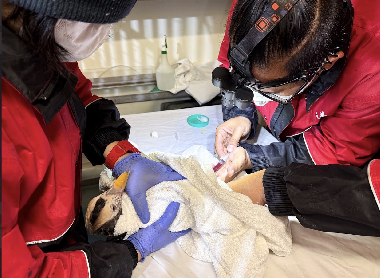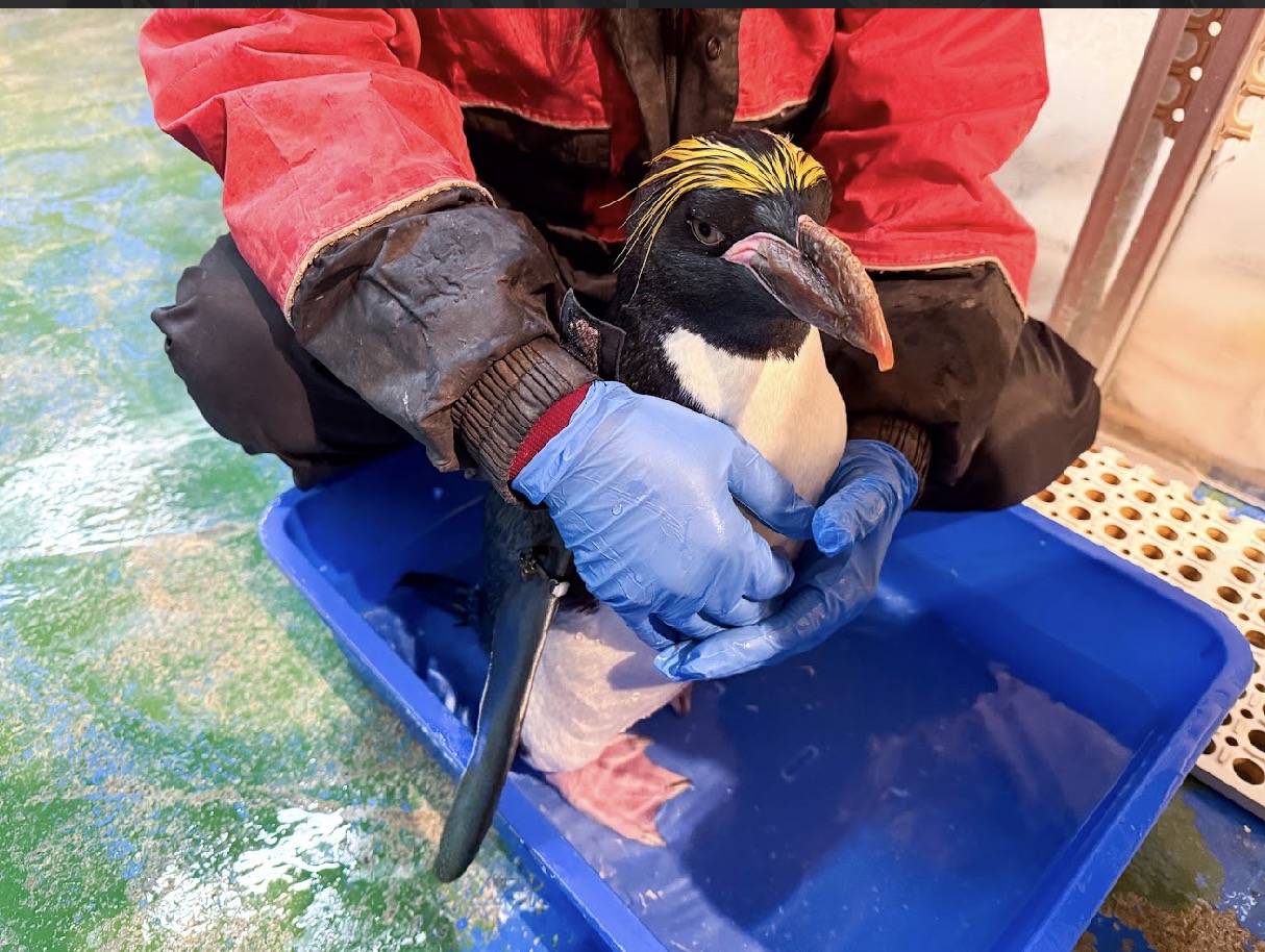 為掌握企鵝的健康狀況,海生館每年皆安排完整的健康檢查,內容包含體重與體態評估、血液檢驗等項目,並與國立屏東科技大學獸醫系合作,由專業獸醫團隊進行診斷分析,確保每一項數據精確可靠。檢查過程中,飼育員會先讓企鵝浸泡溫水,使血管更為明顯,有助於抽血作業順利進行,兼顧醫療專業與動物舒適度,也為嚴謹流程增添一絲溫馨畫面。