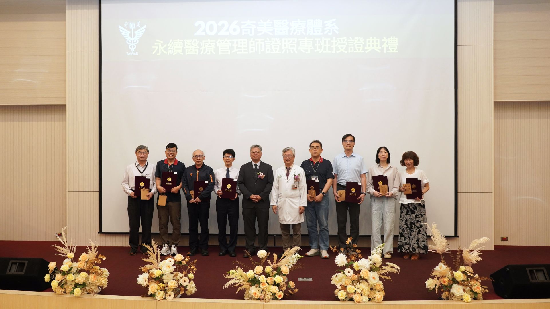 面對全球氣候變遷挑戰與國家淨零排放政策,醫療產業面對低碳轉型的關鍵堡壘,亟需跨領域專業人才培植綠色醫療永續實戰力。奇美醫療財團法人奇美醫院與國立成功大學強強聯手,於115年4月29日辦理「永續醫療管理師證照培訓專班結訓暨頒證典禮」,透過衛生福利部健康臺灣深耕計畫,將綠領培力資源由醫學中心向外擴散,除了奇美醫療體系(永康奇美醫院、柳營奇美醫院、佳里奇美醫院)外,高雄榮民總醫院臺南分院、營新醫院、洪外科醫院等共6家盟院也派員共同參與,成功培育50位具備實戰力的「永續醫療管理師」,為南部醫療體系打造綠色轉型的生力軍。