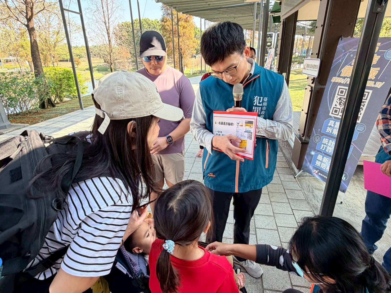 春節即將來到又適逢學生寒假期間,為讓市民朋友在年節採買、外出旅遊之際,能持續保有犯罪預防、自我保護之觀念和警覺性,臺南市政府警察局犯罪預防宣導團主動出擊,結合114年全年臺南市受理詐騙案件數高發分局,近日前往轄內人潮聚集之場所:永康區社教中心、仁德區奇美博物館、安南區果菜批發市場及東區崇義黃昏市場等處所,於現場設置防詐宣導攤位,主動穿梭於現場人潮中,以走動式宣講、互動趣味有獎徵答之方式,和現場攤商、採買民眾、參加活動之大、小朋友們互動交流,傳遞最新反詐資訊、介紹165打詐儀錶板網頁資訊,並提醒在人潮聚集處所要保管好自身財物,提升民眾防詐及安全觀念。