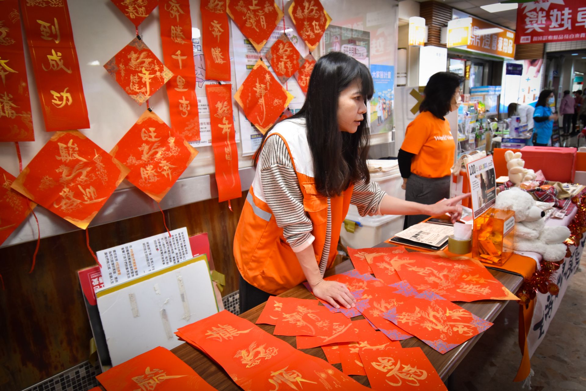 藝術家翁銘宏以創意春聯為活動增色,其創作巧妙融入「馬年」意象,推出經典版與Q版春聯,寓意「攏馬健康」、「攏馬平安」、「馬到成功」,希望提高民眾購買意願,所得將全數捐贈給展望會作為平安紅包善款。