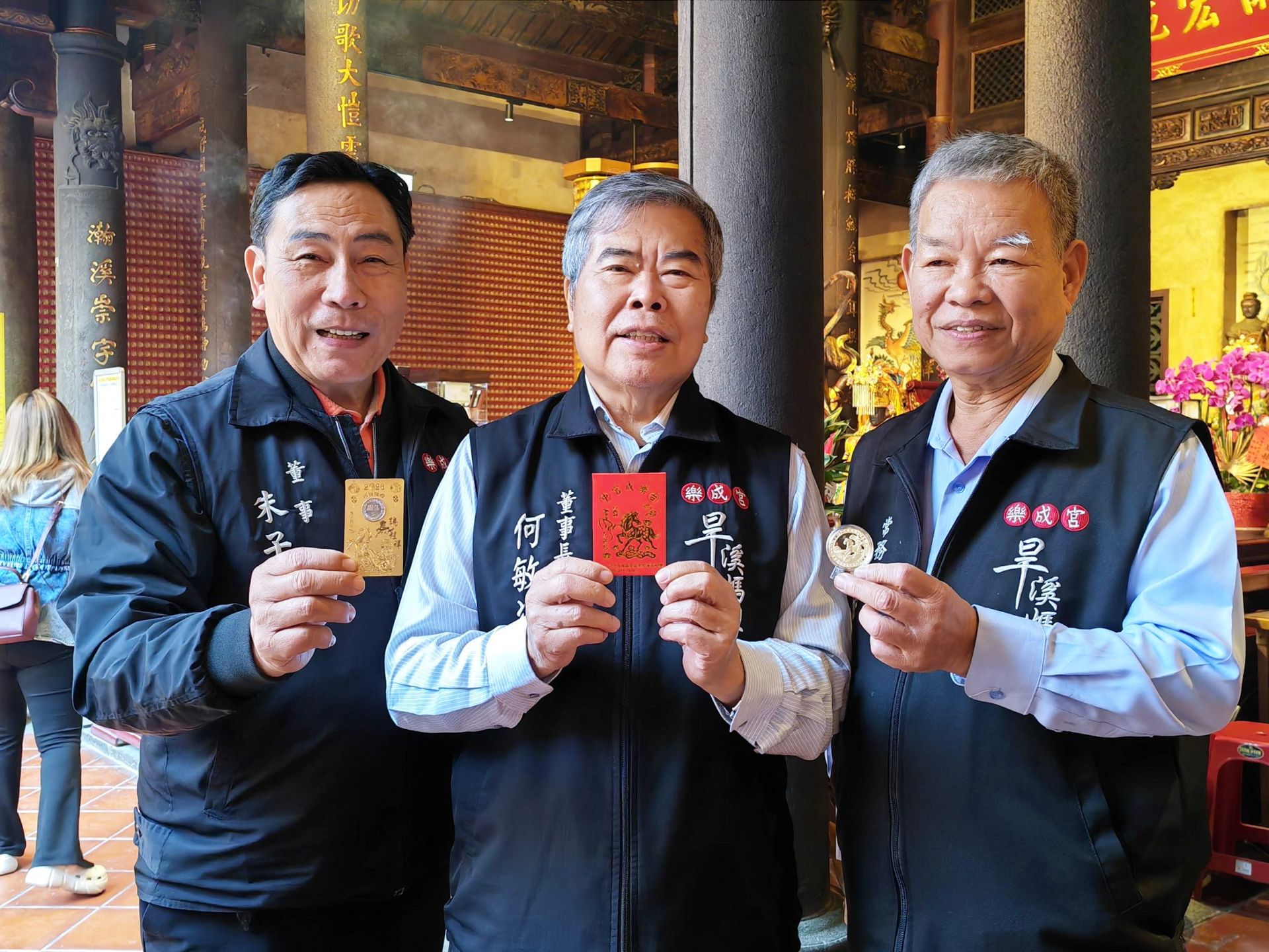 同時,何董事長也預告樂成宮為迎接丙午馬年,已規劃一系列新春活動。自正月初一起,將發送發財金紅包、舉辦倰轎腳贈「馬到成功」錢母活動;初四將舉行擲國運籤、接財神儀式;初五則有媽祖鑾駕巡禮六大百貨公司祈福活動。