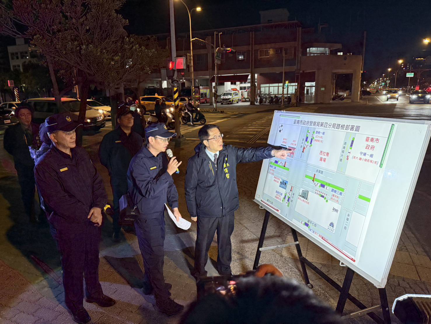 黃偉哲同時也期許所有參與維護治安的單位,對於為期15天的「加強重要節日安全維護工作」務必落實執行,並持續以「打詐、緝毒、掃黑」為核心任務,善用科技執法,並結合義警、民防、義交及守望相助隊等民間力量,全力投入治安及交通維護工作,攜手打造安全宜居城市,讓市民安心、快樂過好年。
