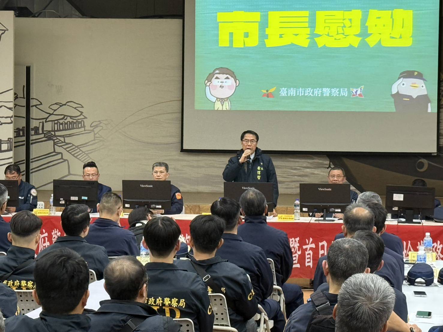 ▲市長黃偉哲勉勵辛苦的警察,過年無法正常休息、持續維持社會大眾的治安。(警察局 提供)