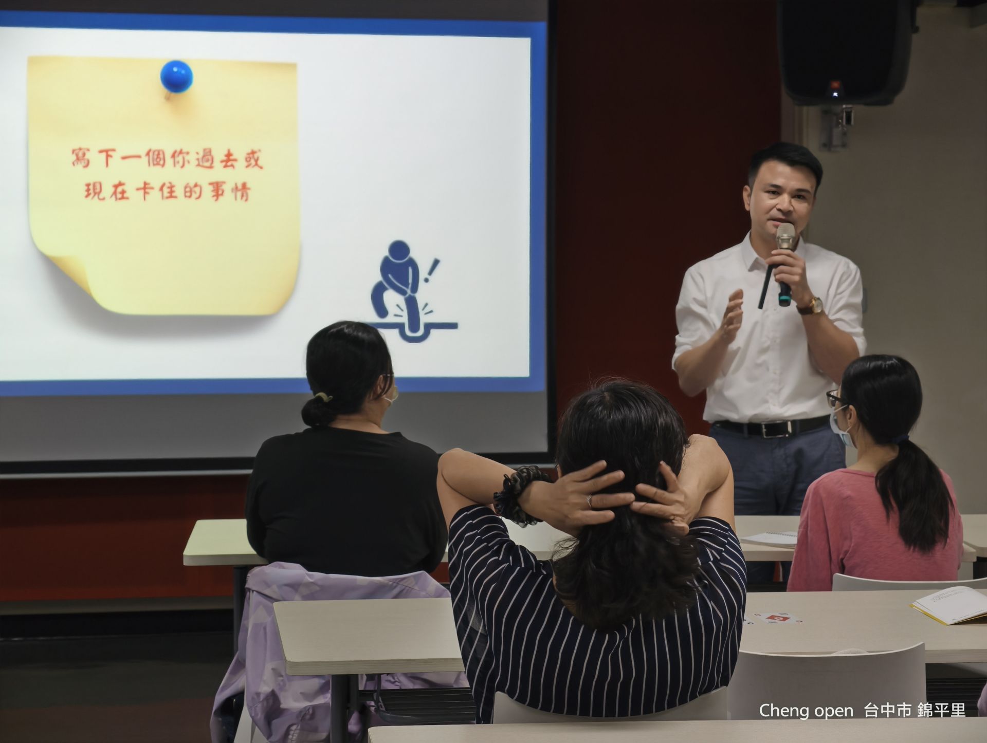 ▲阿亮老師與現場民眾互動寫下卡住的地方 覞傳媒 攝